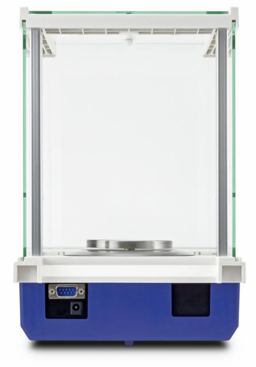 Schutz und Übersicht: Großzügiger Glaswindschutz inklusive, mit einem Wägeraum von 175 × 150 × 205 mm (B × T × H).