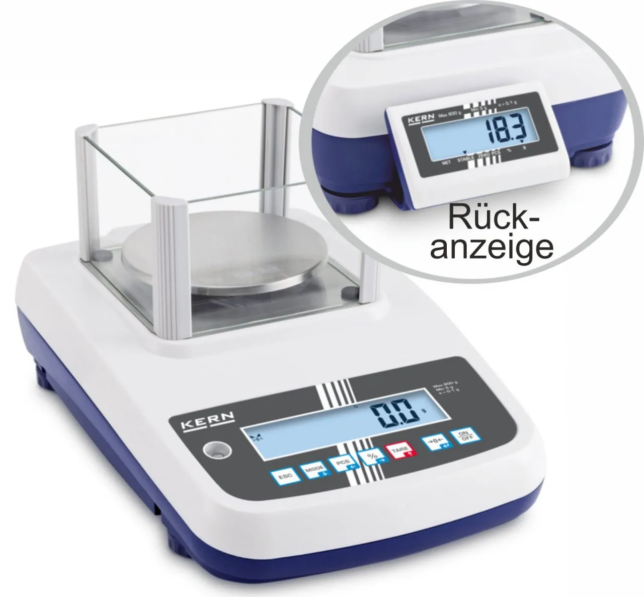 + Mit Anzeige (Display) auf der KundenseiteWägebereich 600g - Ablesbarkeit (d) 0.1g Eichwert (e) 0.1g