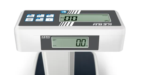Geeichte medizinische Personenwaage von KERN MPN 200K-1PM mit Medizinzulassung nach VO (EU) 2017/745 und BMI Berechnung. Professionelle, geeichte Personenwaage.