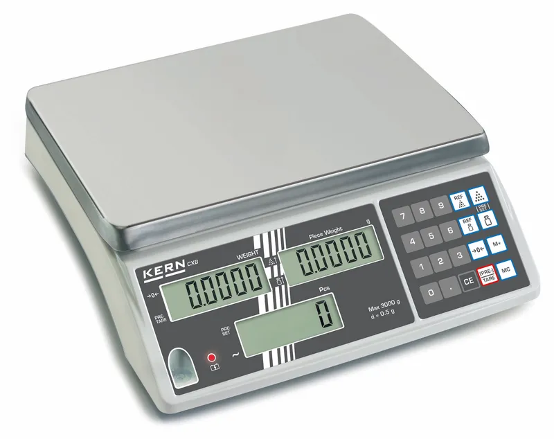 Vielfältige Profi-Zählwaage KERN CXB mit Eichzulassung in verschiedenen Wägebereichen. Mit der CXB arbeiten Sie stationär, oder mobil durch den integrierten Akku.