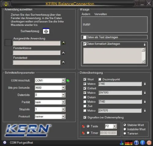 Mit der KERN Balance Connection übertragen Sie Ihre Wägedaten in PC Anwendungen.